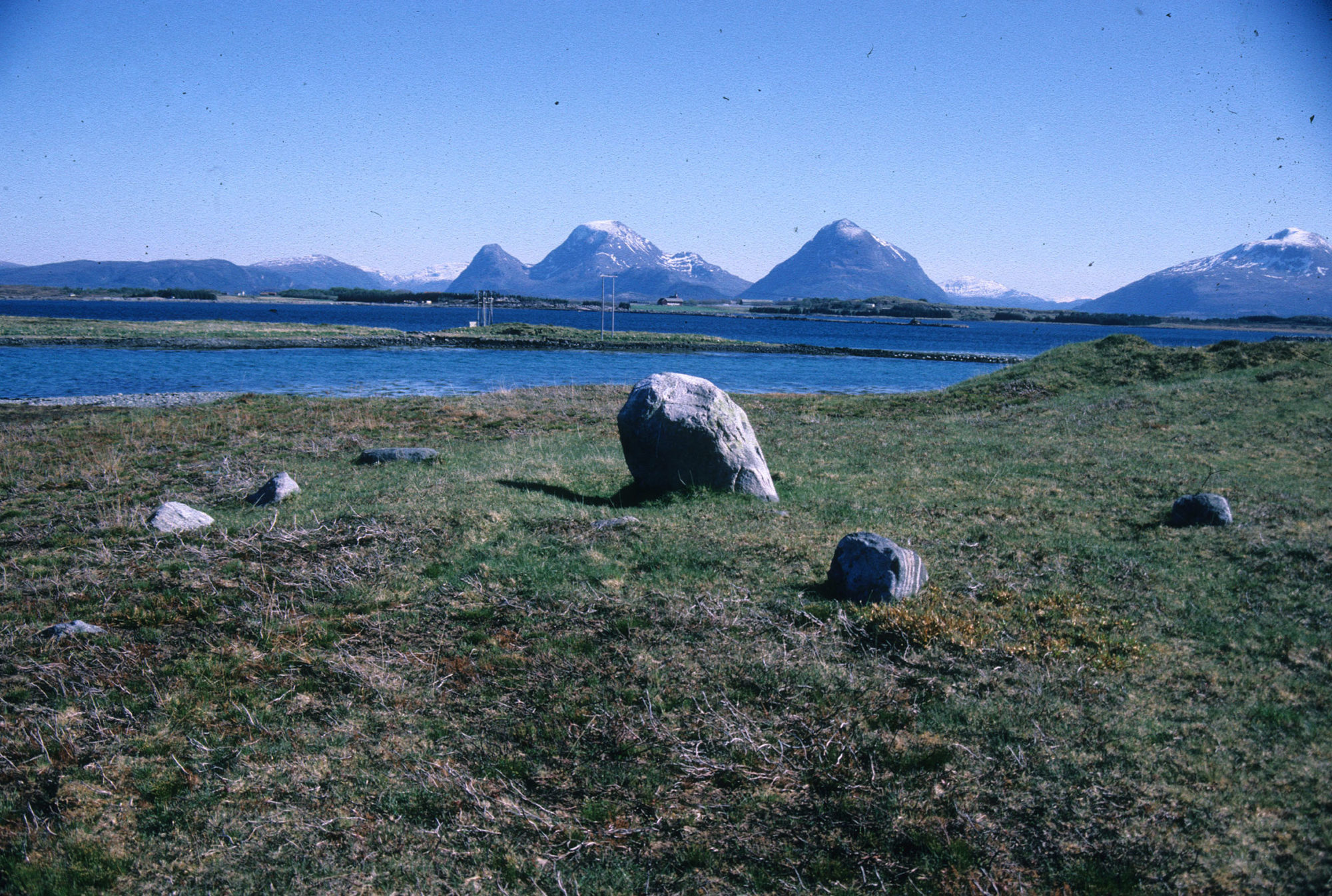Foruten gravhauger, til dels av monumental størrelse, spredt rundt på øya, fins det fem gravfelter nærmest på rekke og rad på østsiden av øya. Og har en stått og måpt foran Kulisteinen, ja, så sperrer en øyene enda mer opp etter et kvarters fottur mot nordøst. Her ligger det svære gravhauger opptil flere meter høye, som kupler i det flate terrenget. Her fins flere rekker med lave steinringer ved siden av hverandre, steinstrenger bortetter bakken, en nærmest båtformet steinlegning og helt ned til en to-tre steiner satt mot hverandre. Her er felter med lange sigar-formede hauger, og et felt med et tjuetalls små «tuer» nesten ikke verdt å kalle hauger. Alt dette er graver. Og enda har vi ikke sett det merkeligste: Firkantede, avlange steinsettinger som ligner hustufter, men som utvilsomt er gravanlegg og en steinring med en reist hvitaktig stein i midten. Utvilsomt et gravanlegg, dette også, men lokalt kalt for offersted, og det kan det meget godt ha vært. Selv de mest pripne jomfruer vil kunne forestille seg den reiste steinen som en fallos, en steinpenis, og blygt slå blikket ned.